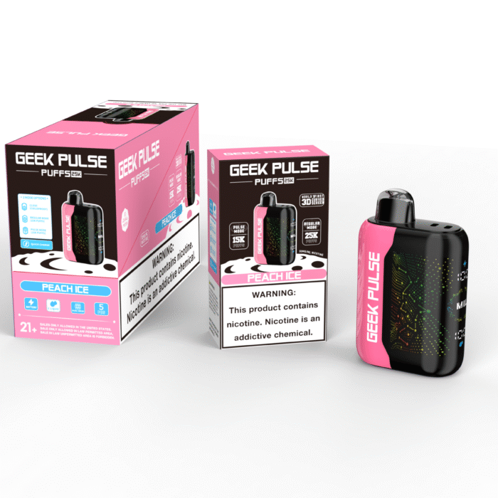 As the rich peach flavor envelops your senses, a transformative wave of crisp, glacial ice sweeps across the palate. This expertly calibrated cooling sensation doesn’t overpower the fruit’s natural sweetness but instead elevates it, smoothing the edges and enhancing the peach’s juicy character. The result is a perfectly balanced harmony of flavor and freshness—a sweet, aromatic peach profile complemented by a clean, invigorating chill that lingers delightfully on the exhale. Designed for all-day enjoyment, this flavor combines the comfort of a classic fruit taste with the exhilarating thrill of an icy finish. Housed in the advanced Geek Pulse device, Peach Ice ensures consistent, robust vapor production and a satisfying 5% nicotine salt hit, making it an irresistible choice for those who crave fruity flavor with a refreshing, cool twist.